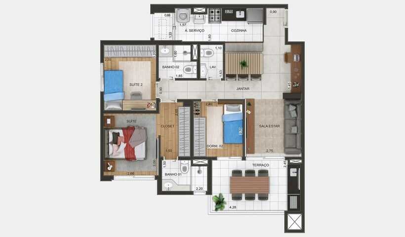 - Área Total: 88 m²