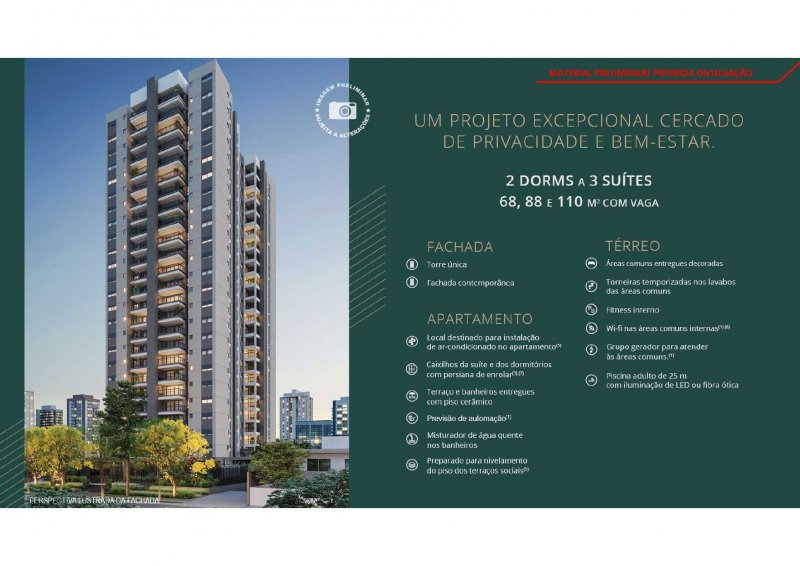 - Apartamentos de 69m a 110m a Partir de R$ 6.500 o metro quadrado.