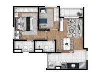 Apartamentos de 42m² / 2 Dormitórios Varanda Gourmet (churrasqueira a carvão)